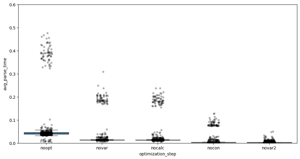 - NOCON: Reducing connection-related API calls results in another clear drop in parsing time.